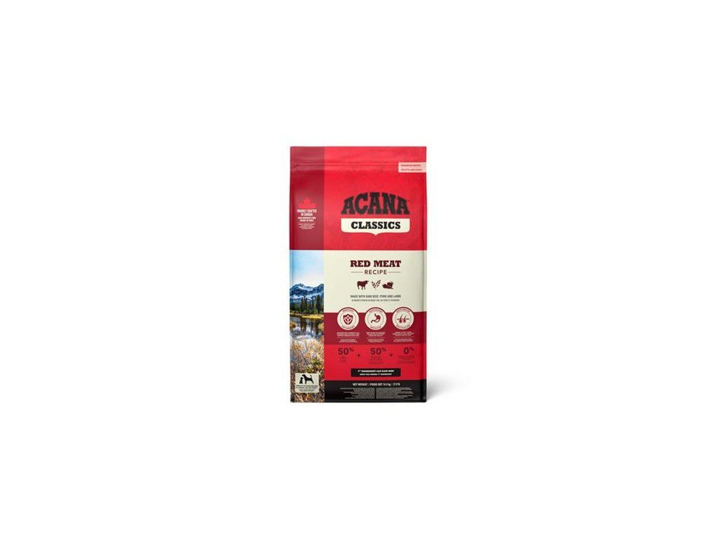 surové hovädzie mäso (16%), dehydrované jahňacie (15%),perličkový jačmeň, celý hrášok, ovsené krúpy, bravčový tuk(8%), dehydrované bravčové (8%),celý ovos, cícerová vláknina, surové bravčové mäso (2%), rybí olej(1%), chlorid draselný, sušené riasy, soľ, sušený koreň čakanky, čerstvá celá tekvica, čerstvá celá maslová tekvica, čerstvá celá mrkva, čerstvé celé jablká, čerstvé celé hrušky, čerstvá celá cuketa, čerstvý kel, čerstvý špenát, čerstvá červená repa, celé brusnice, celé čučoriedky, celé Saskatoon bobule, kurkuma, ostropestrec, koreň lopúcha, levanduľa, koreň ibišku, šípky.